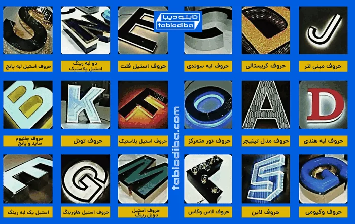 نمونههای تابلو حروف برجسته در تابلو دیبا
