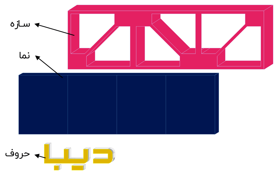 حروف برجسته در تابلو سازی به صورت معمول از چهار بخش اصلی تشکیل شده است: