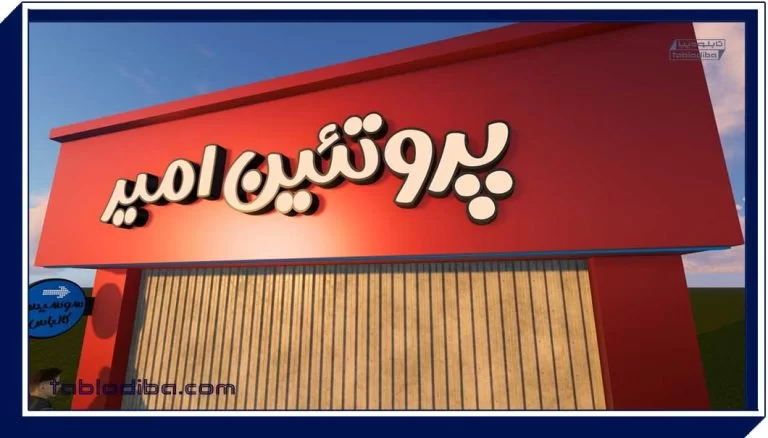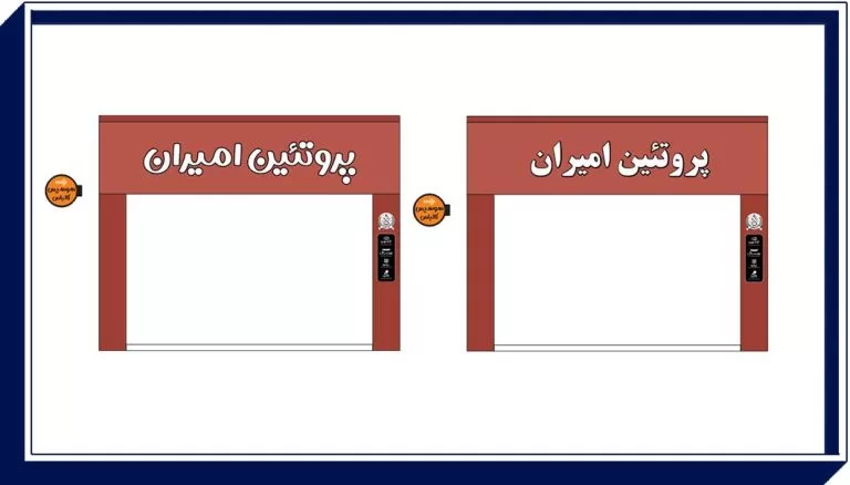 در مرحله بعد، یکی از طرحها بهعنوان گزینه نهایی طراحی و ساخت تابلو فروشگاهی انتخاب شد. برای نمایش شفاف جزئیات، یک مدل سهبعدی تابلو تهیه و برای مشتری ارسال گردید. پس از تأیید نهایی صاحب فروشگاه محصولات پروتئینی امیران، طرح منتخب وارد مرحله اجرا شد.