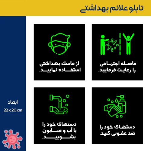 تابلو علائم بهداشتی ویژه مبارزه با کرونا