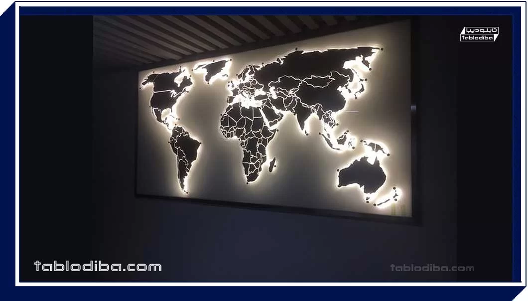 • قابلیت نورپرداری: برخی از تابلوهای نقشه جهان را می‌توان مجهز به نورپردازی کرد تا زیبایی آنها بیشتر شود.