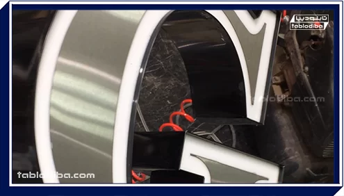 2. برش پلکسی با لیزر: با استفاده از دستگاه لیزر مخصوص، بخش رویی تابلو یعنی پلکسی با دقت میلیمتری و مطابق با نقشه فنی برش داده میشود. کیفیت برش پلکسی تأثیر مستقیم در زیبایی و یکنواختی نور تابلو دارد.