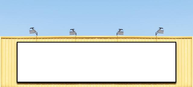 Mock up white background billboard on yellow building with spot light