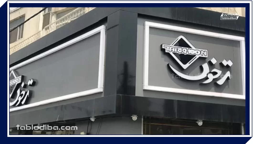 • جزئیات طراحی و نوع حروف: وجود حروف برجسته، نورپردازی، رنگ‌های خاص یا لوگوهای سفارشی باعث افزایش هزینه طراحی و اجرای تابلو می‌شود.