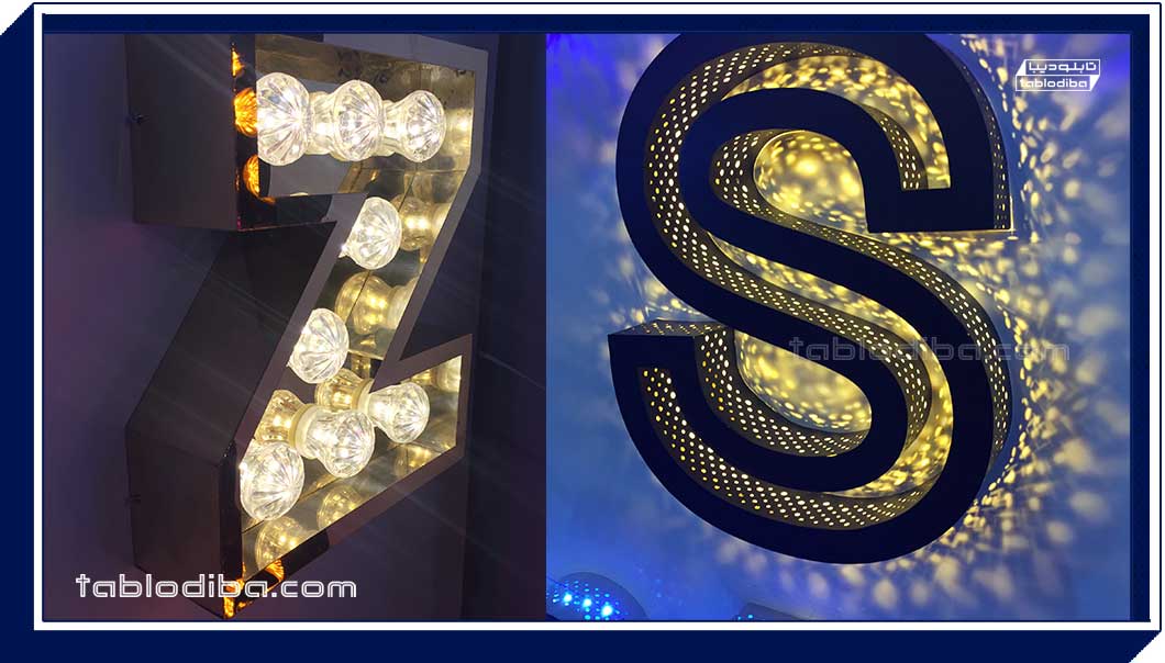 در این نوع تابلو، حروف سهبعدی با استفاده از مواد نورپردازی مثل LED روکش میشود. این تابلوها در شب و محیطهای کمنور، با جذابیت و برجستگی بیشتری مشاهده میشوند.
