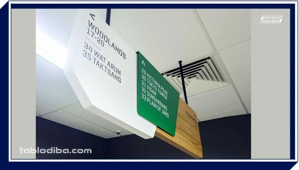 - سادگی و وضوح: طرح تابلو باید ساده و روشن باشد تا افراد بهسرعت متوجه اطلاعات آن شوند.