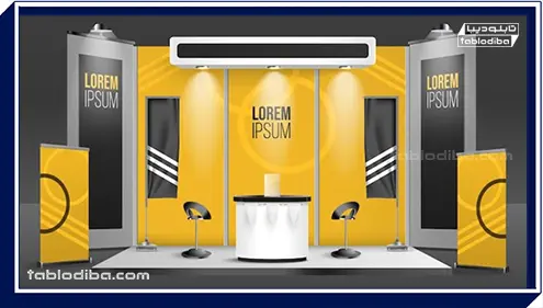 تابلویی که با هویت برند همخوانی داشتهباشد، اندازه و متریال و نورپردازی آن مناسب با حال و هوای نمایشگاه و یا رویداد باشد.